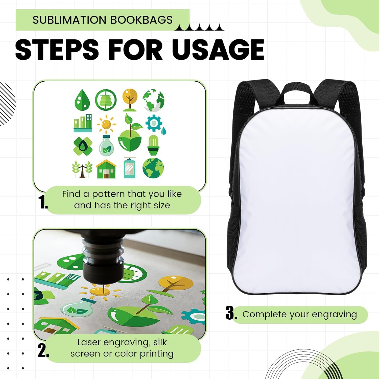 Spacious and Sensible: The scale of sublimation backpacks is 17 inch. Every backpack gives principal compartment and one small entrance pocket on your children put some books, pens in it. Please verify whether or not the dimensions is appropriate on your children