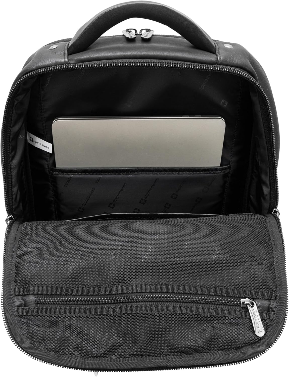 Olsen Laptop computer Journey Backpack By Alpine Swiss Product Options: Real Leather-based, 1680 Denier Ballistic Nylon SLIM PROFILE – The Alpine Swiss Olsen real leather-based laptop computer journey backpack is a modern and complicated bag that appears nice on any enterprise skilled. Good for on a regular basis use within the workplace and makes a fantastic journey companion to hold your laptop computer and all of your necessities. Total measurements 16” L x 12” W x 5” D. LAPTOP POCKET – Options 4 zippered compartments complete. Most important compartment has a devoted laptop computer slip pocket that matches 13” inch laptop computer. It additionally has a slip pocket and a zippered mesh pocket to simply see and discover your belongings. SMART ORGANIZATION – The again zippered compartment zips all the way in which right down to the underside of the backpack for max entry to your gadgets and has 2 slip pockets and a big zippered pocket. The entrance zippered compartment has 2 elastic mesh pockets, a clip for keys, 1 giant zippered pocket, 2 slip pockets with card holders, and a couple of pen holders. TRAVEL FRIENDLY – The adjustable shoulder straps are calmly padded and the again mesh panels with thick mushy foam present consolation and breathability. The underside mesh panel can also be a trolley strap that simply slides over a baggage deal with. The carrying prime deal with can also be thickly padded so to comfortably grip and carry your backpack. QUALITY MATERIALS – The real leather-based materials appears traditional and delightful. The underside is made with a 1680 Denier Nylon that’s sturdy. The highest deal with rivets and easy zipper pulls have a gunmetal tone end. Completed with our traditional Alpine Swiss embossed brand. MSRP $125.00