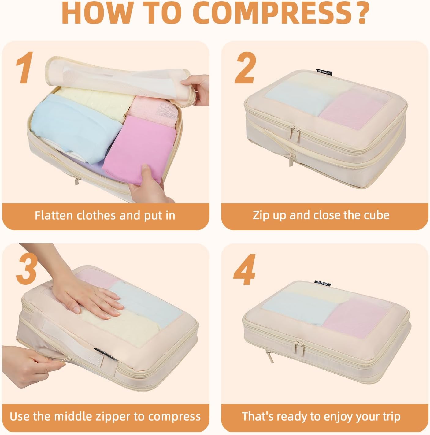 Simple to Journey: Utilizing the compression packing cubes not solely can make the most of the restricted area in suitcase to accommodate extra necessities but in addition can categorize and arrange your objects as a way to discover what you need everytime you want it