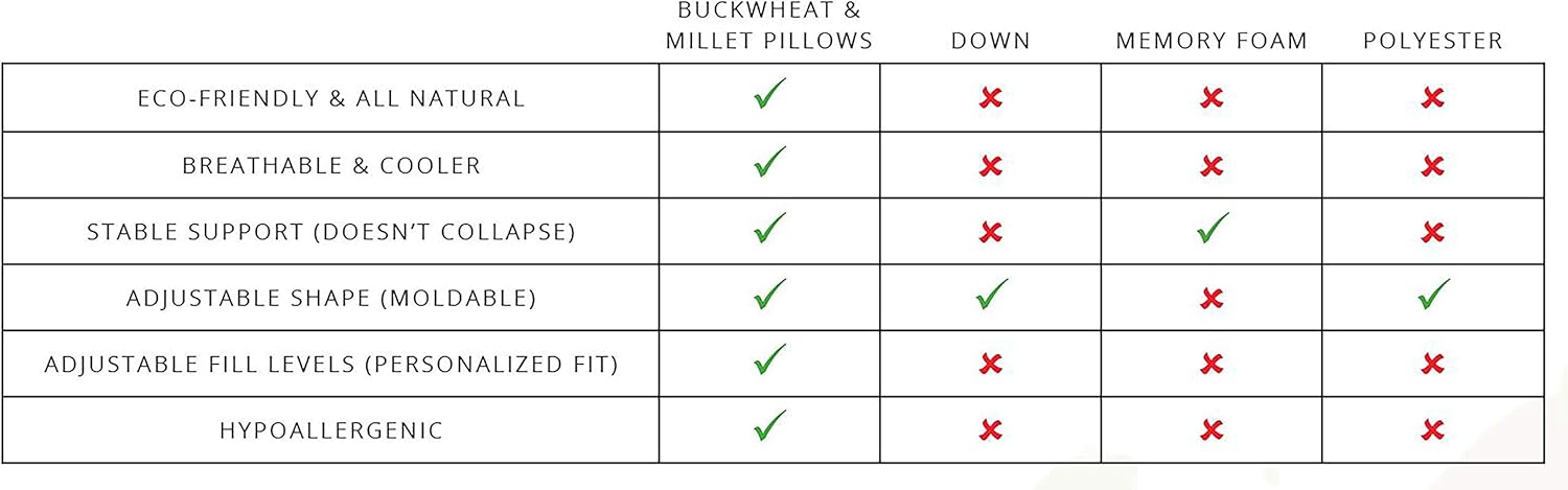 Buckwheat and millet hull pillows have been round for hundreds of years and used each in Asia and Europe. Beneficial by chiropractors to keep up correct spinal alignment throughout sleep whereas maintaining you comfy and your muscle tissues absolutely relaxed. Hulls shift and regulate to cradle your head and neck with excellent pressure-relieving, passive help, whilst you shift positions throughout sleep. They’re the pure selection for wholesome, restorative and ergonomically right sleep. Hulls are a far superior filling to polyester or foam. Bucky makes use of solely premium and pure hulls and better of all they’re hypoallergenic. Filling doesn’t bunch or clump and lasts for years.