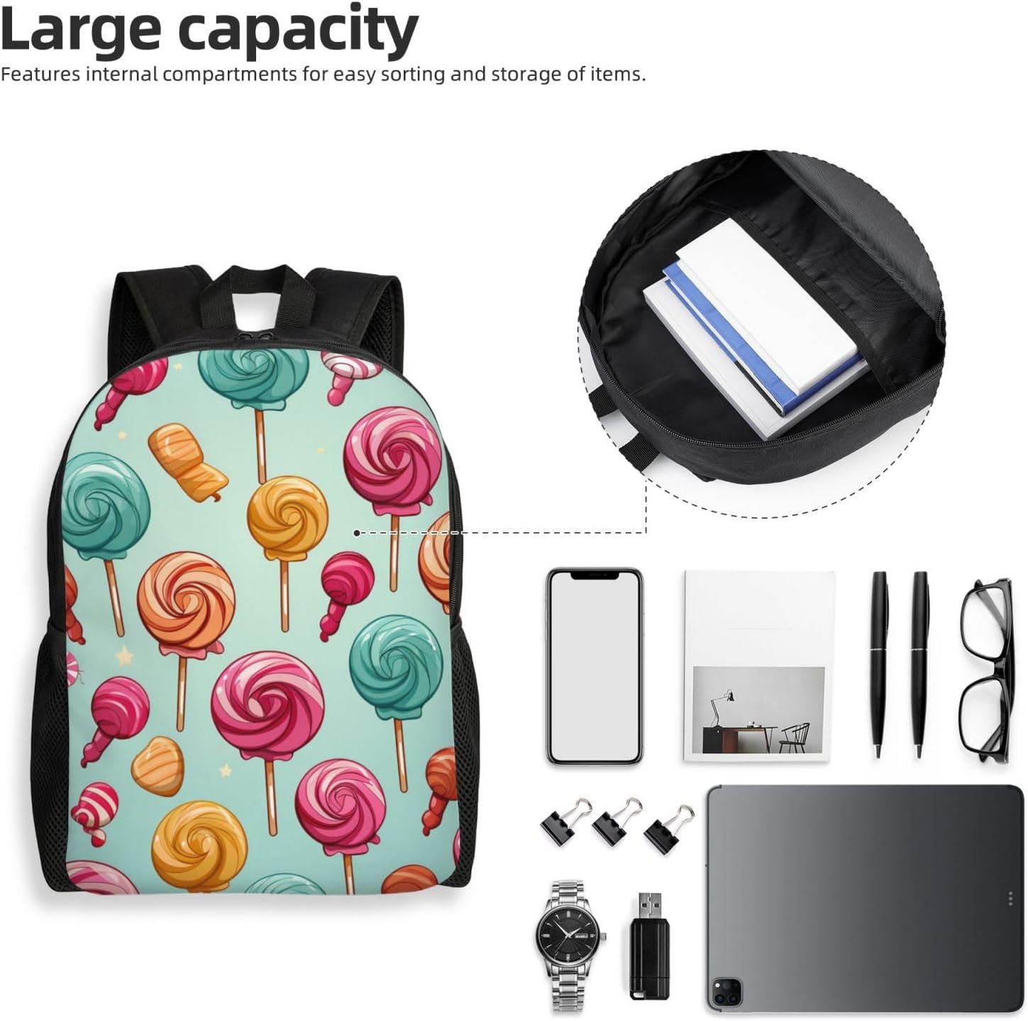 Trendy Full-Print Design: This Journey Laptop computer Backpack encompasses a hanging full-front print that provides a contact of persona and elegance to your every day routine. Good for individuals who wish to make a trend assertion whereas staying organized.