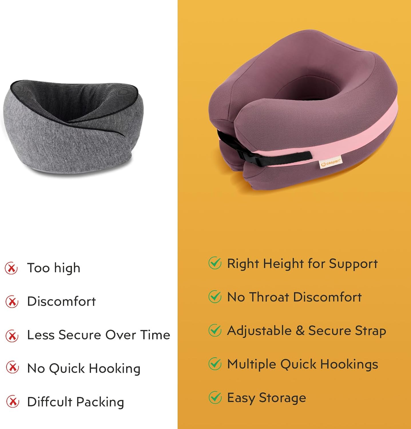 After numerous trials, we perfected the Cesperi journey pillow by testing reminiscence foam densities and refining its circumference for the perfect steadiness of consolation and assist