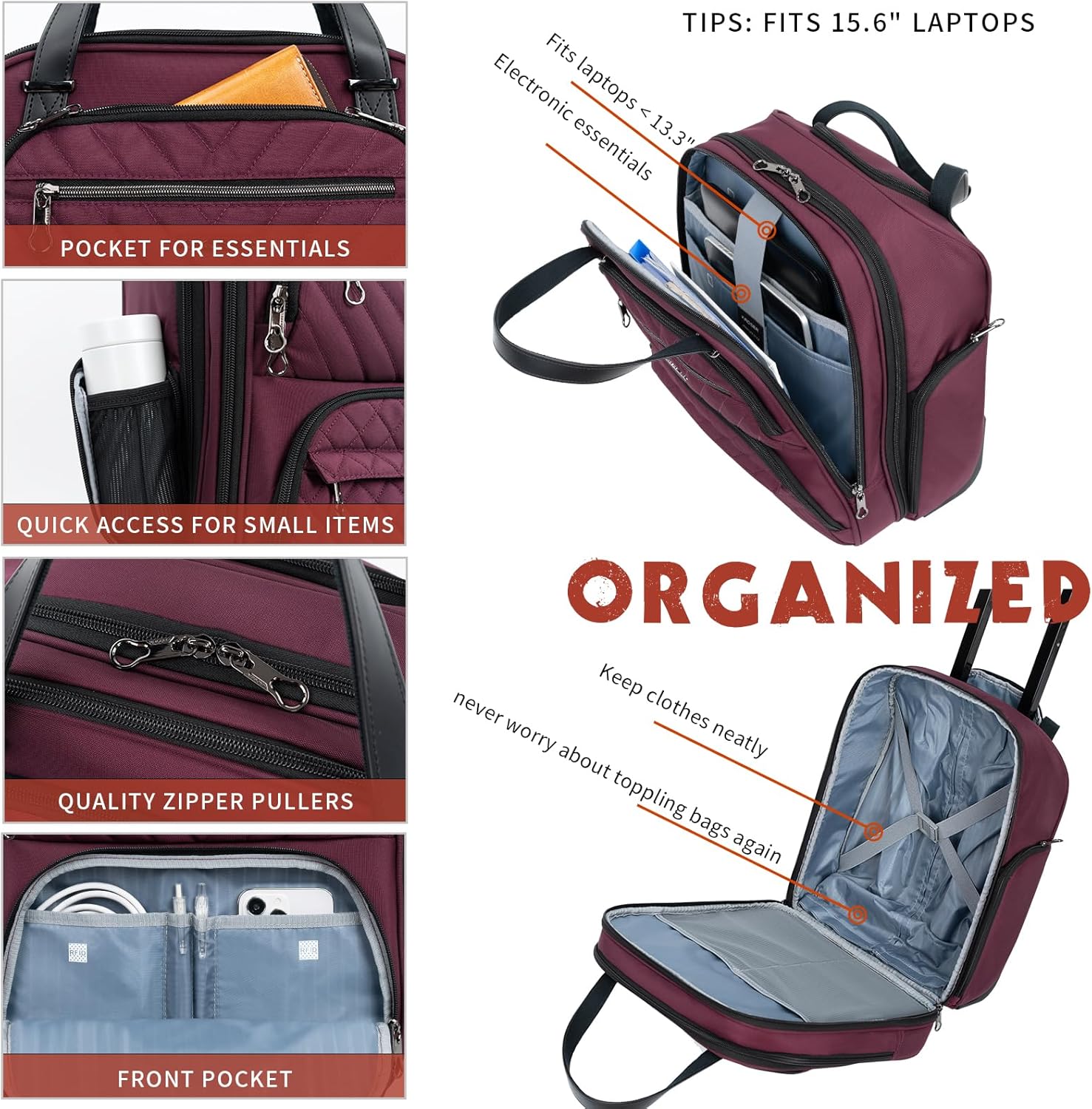 MULTI- FUNCTION PERSONAL BAG: Spacious essential compartment works properly for garments/footwear. Encompasses a padded laptop computer compartment that matches laptops as much as 15.6 inches. Simple-access entrance organizer for small gadgets. Either side with zipper pockets for the battery and water bottle.