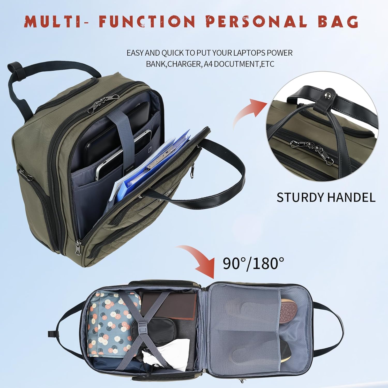KROSER Carry On Underseat Multi-functional, 16-inch Underseater Lightweight Overnight Suitcase for Women, Olive