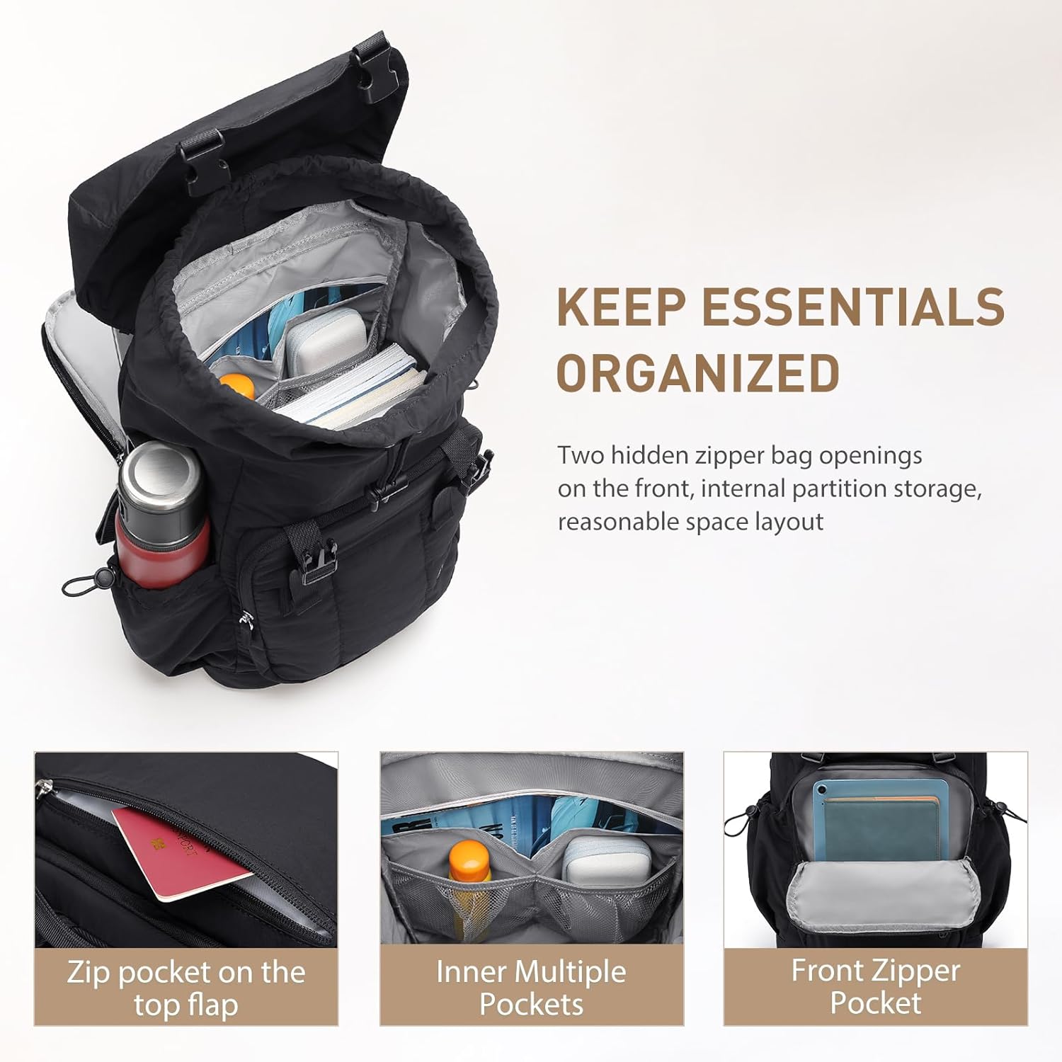 Spacious and Sensible Organisation: Journey backpack for girls with a complete of 5 compartments, you’ll be able to organise your belongings nicely. A fundamental laptop computer compartment holds as much as a 15.6inch pocket book; 2 entrance zip pockets present separate areas for pens, keys, pockets, books, garments, and many others.; and there’s a water bottle pocket on all sides for drinks bottles and umbrellas
