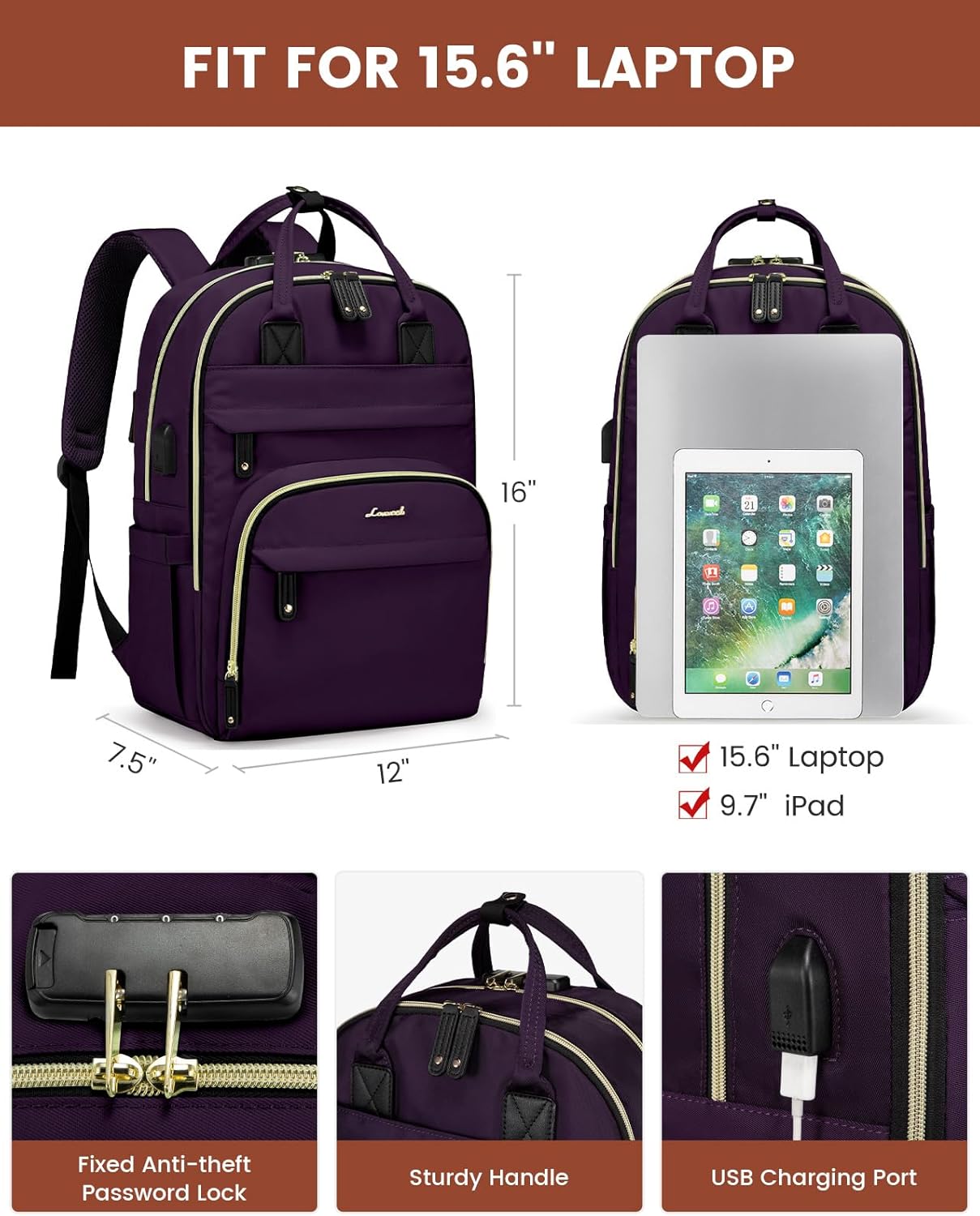 【LARGE CAPACITY】SIZE: 12″L 16″H 7.5″D. The laptop computer backpack has a number of divider pockets, simple for holding 15.6 Inches laptop computer, ipads, Cellphone, water bottle, umbrella, readers, journal, journal, garments, pens, pockets and so forth.