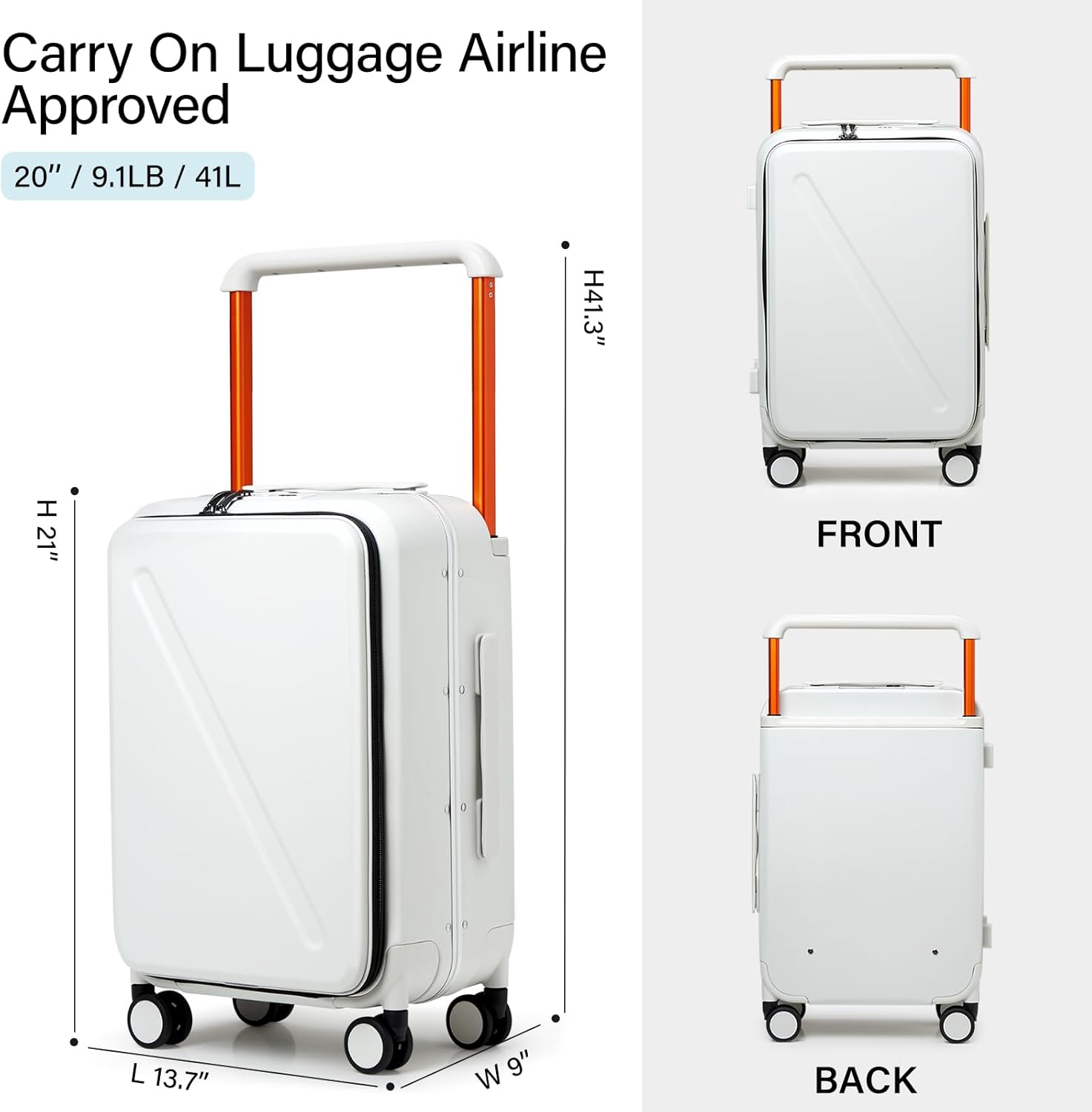 MILADA Luggage Hard Shell Suitcases Airline Approved Carry On Luggage 22x14x9 TSA Approved Luggage 20 Inch Front Opening Pocket Suitcase with Wheels Travel Luggage Wide Handle, White